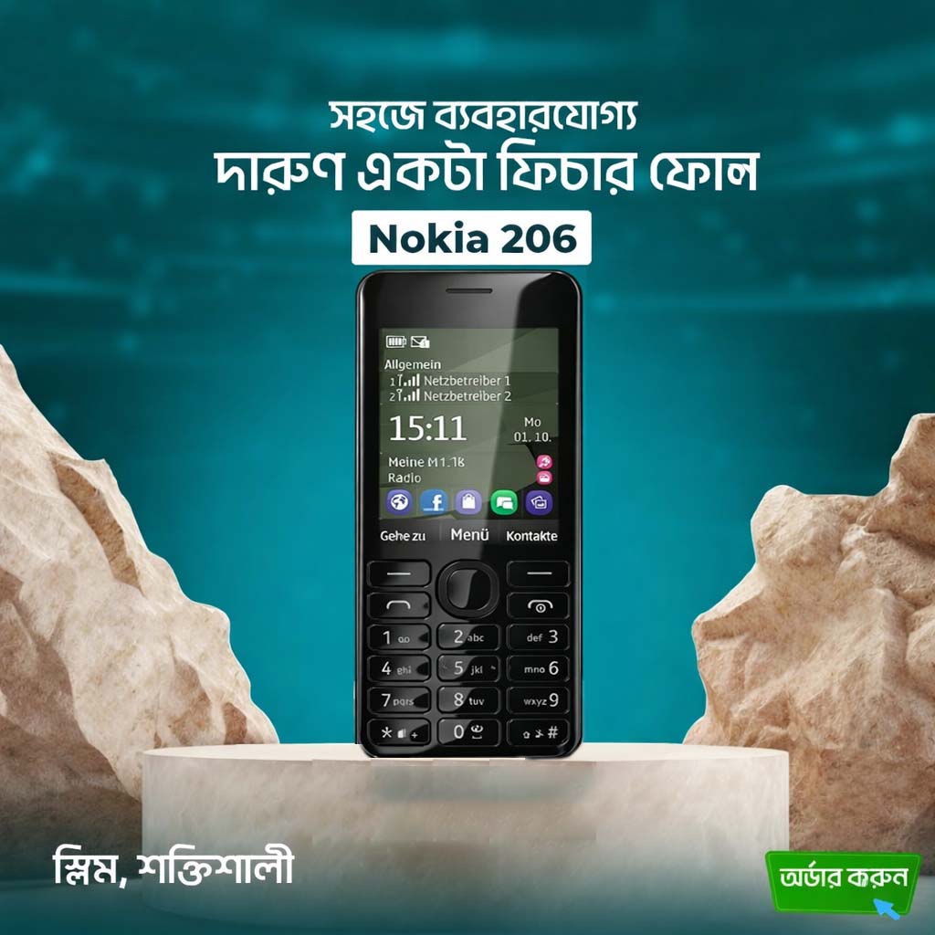 - Nokia 206 এ ২ টি সিম ও মেমোরী কার্ড (সর্বোচ্চ ২জিবি) সাপোর্টেড।